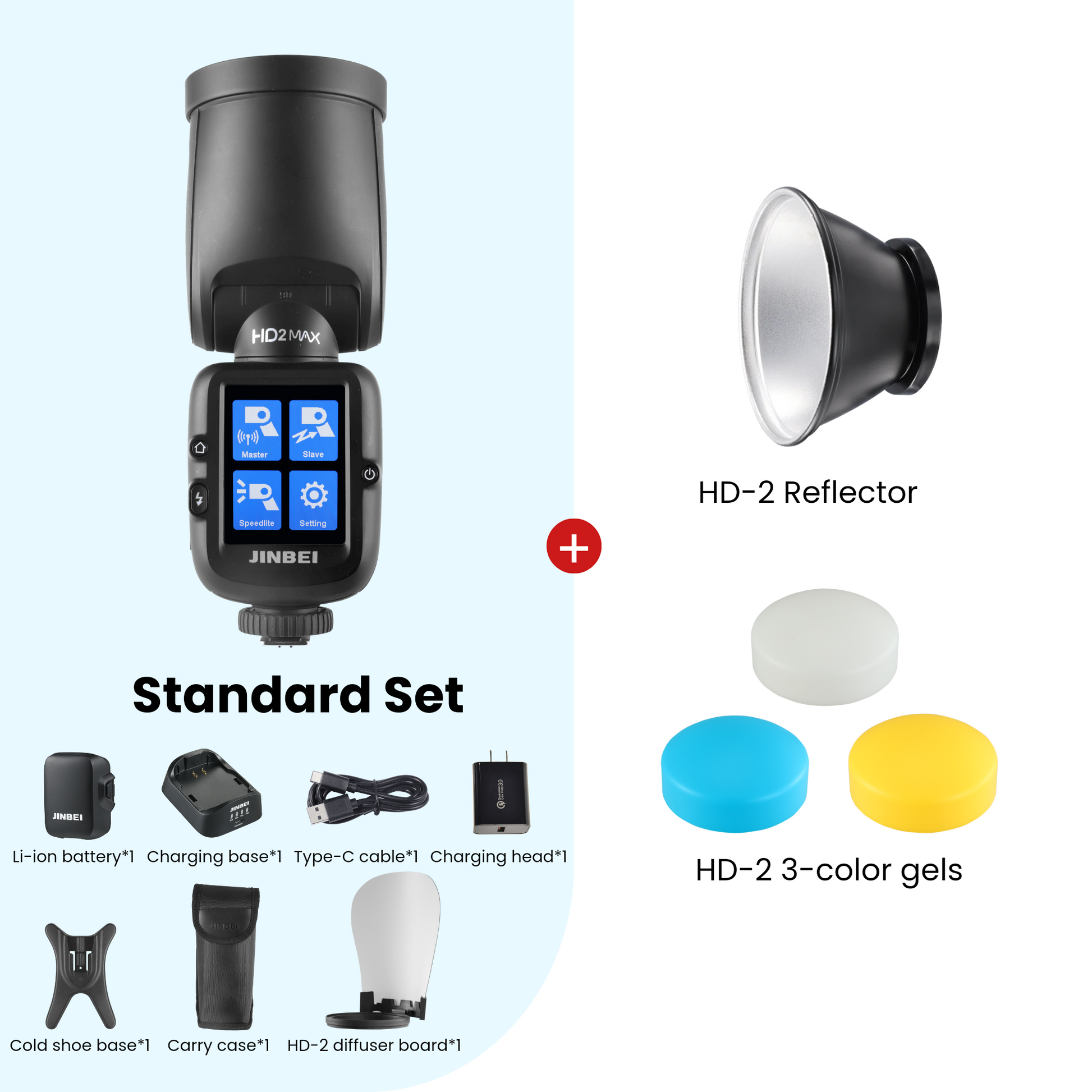 უმაღლესი ხარისხის, მძლავრი, სწრაფი, მსუბუქი და ულტრა კომპაქტური (460 გრამი) Jinbei HD-2Max(S) speedlite (Flash) განათება მრგვალი მაგნიტური თავით სტუდიისთვის და ლოკაციებისთვის.