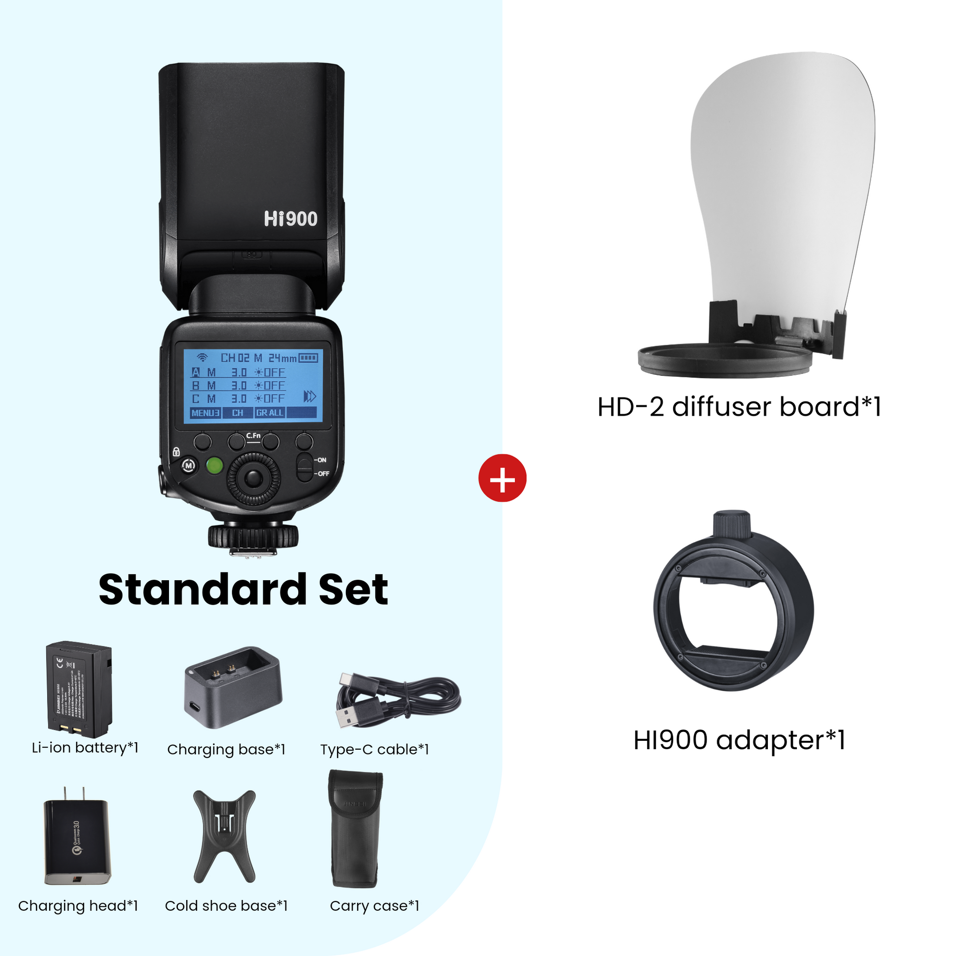 ჩაშენებული Jinbei 2.4 GHz უსადენო სისტემა, Master რეჟიმში Jinbei Hi-900-ს შეუძლია მართოს Jinbei-ის სტუდიის იმპულსური განათებები და სხვა Speedlite (Flash) განათებები.