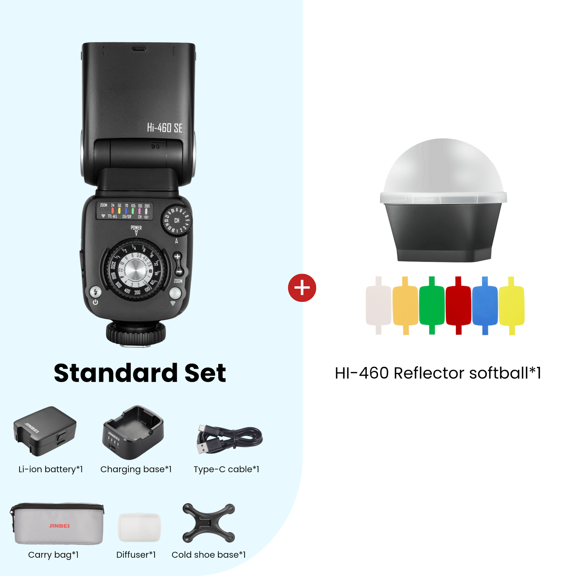 High quality, powerful, fast, lightweight and ultra compact (352 grams) Jinbei Hi-460SE speedlite flash light for studio and locations.