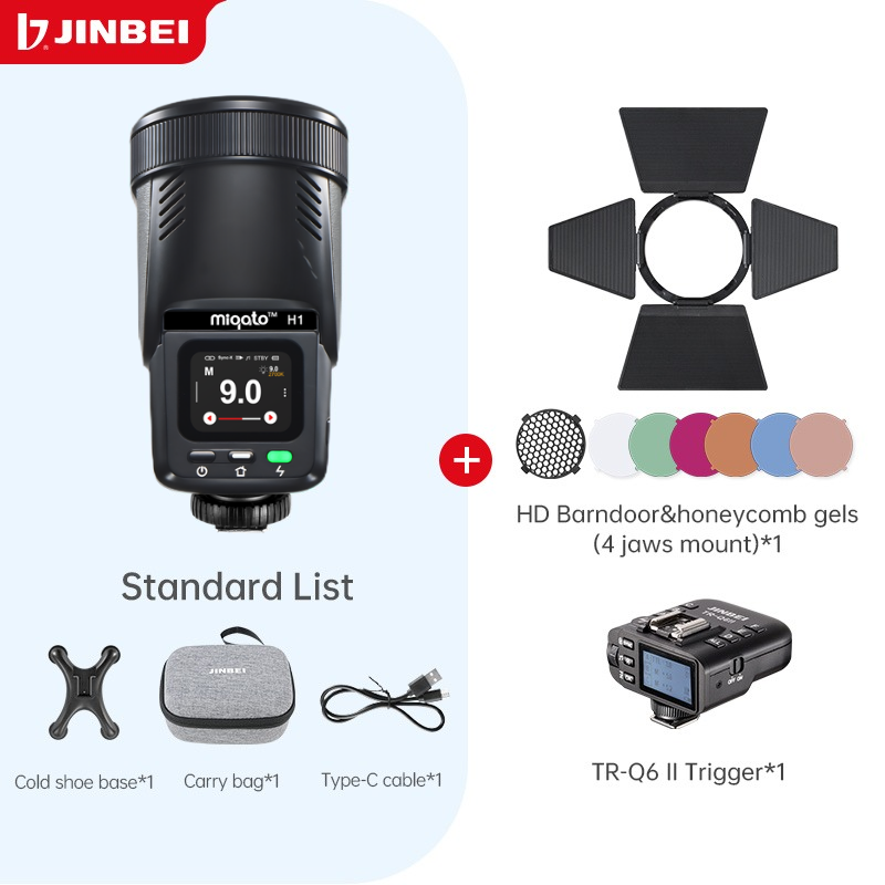 Built-in Jinbei 2.4GHz wireless system, as master Miqato H1 can control Jinbei studio flashes and speedlite flashes.